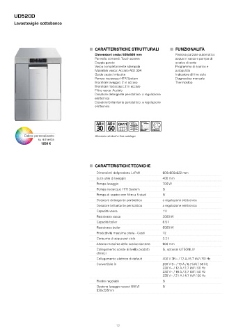 Dosatore detergente peristaltico: a regolazione Boiler 71°C / Vasca 60°C - 50" Boiler 71°C / Vasca 60°C - 2' 10" Boiler 85°C / Vasca 70°C - 45’20”